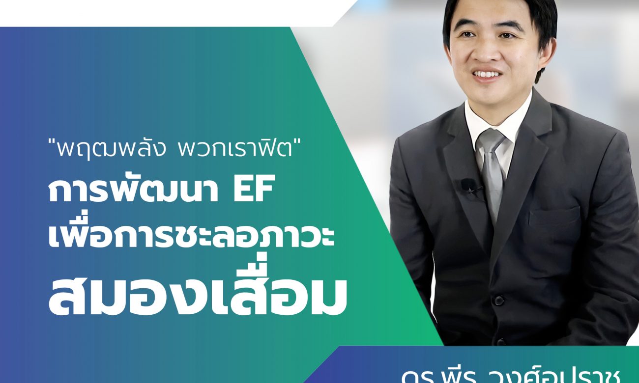 คลิปวิดีโอสั้นๆ ที่จะทำให้ทุกคนรู้จักการพัฒนา EF เพื่อการชะลอภาวะสมองเสื่อม โดยผู้เชี่ยวชาญจากวิทยาลัยวิทยาการวิจัยและวิทยาการปัญญา มหาวิทยาลัยบูรพา